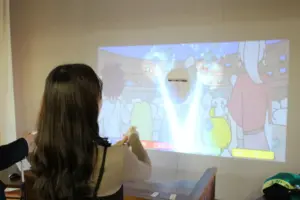 - ・スクリーンに映し出されるアイテムや敵を手元のコントローラーで照準をあわせ、「Light UP」して撃ち落とす「デジタル射的」のようなゲームシステム。