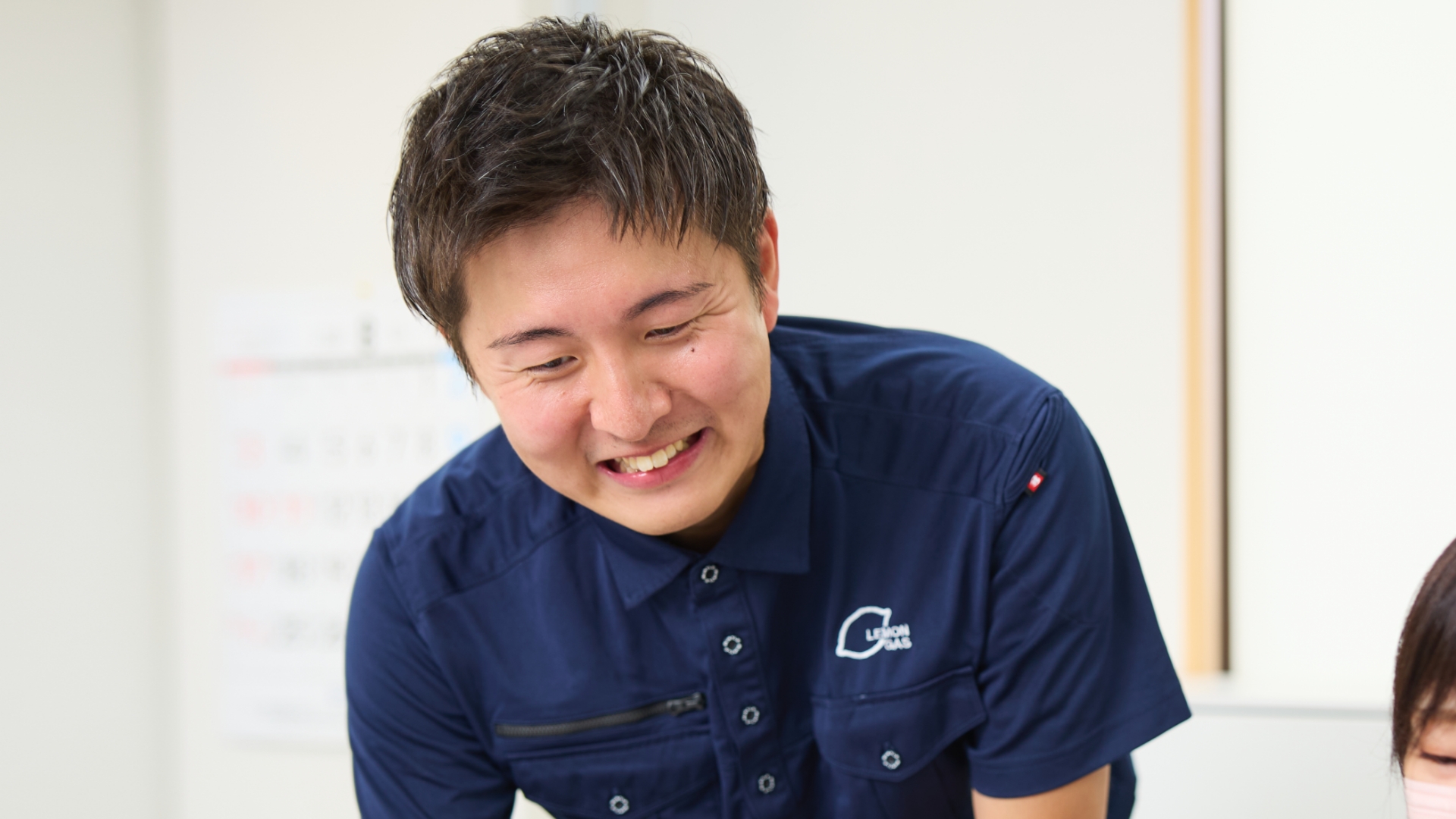 私は、人々の暮らしに密接に関わる仕事を軸に、エネルギー業界を中心に就職活動を行っていました。大学の合同企業説明会でレモンガスのブースに足を運び、地域密着のサービスであることや様々な商材を展開していることに関心を持ち、また小どものころに自宅でレモンガスを使っていたこともあり、この会社で働きたいと思うようになりました。内定者イベントに参加した際には、社員の皆さんの業務中の姿を間近で見ることができ、とても仲が良さそうな雰囲気で仕事に取り組む様子を見て、この会社なら私自身も働き続けられそうだと思ったことが入社の決め手です。